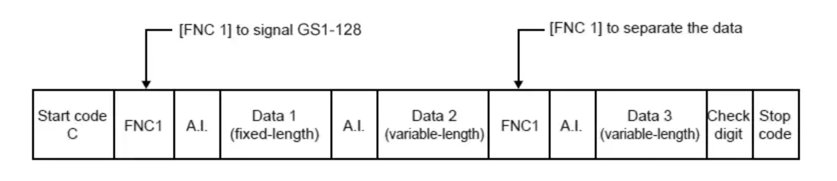 In order to distinguish GS1-128 from CODE 128, it is required to give [FNC 1](function 1) following the start code (CODE-A to C).