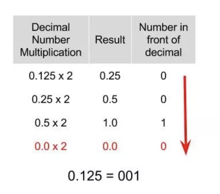 For instance, the number 85 in binary is 1010101 and the decimal portion 0.125 in binary is .001. When you combine them using a decimal point, you end up with 1010101.001 as your final answer.